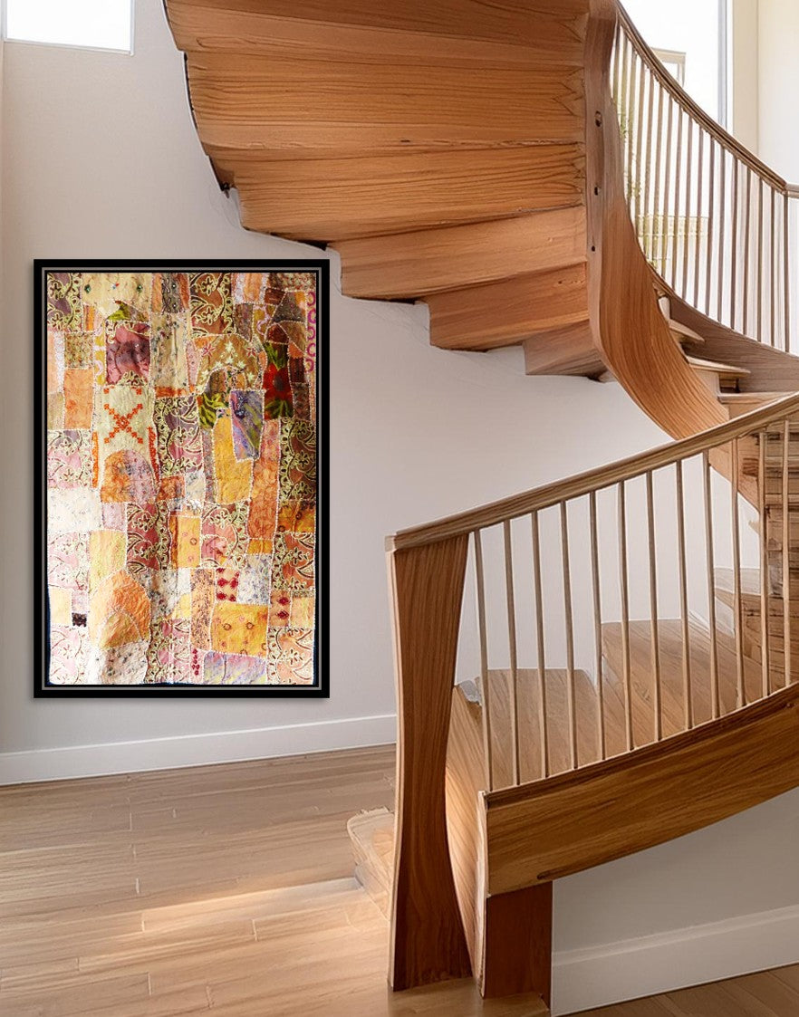 Fabric Wall Art Tapestry. Living Room Patchwork Wall Decor.- "Saffron Shades". Boho, Indian Home Decor. Artikrti
